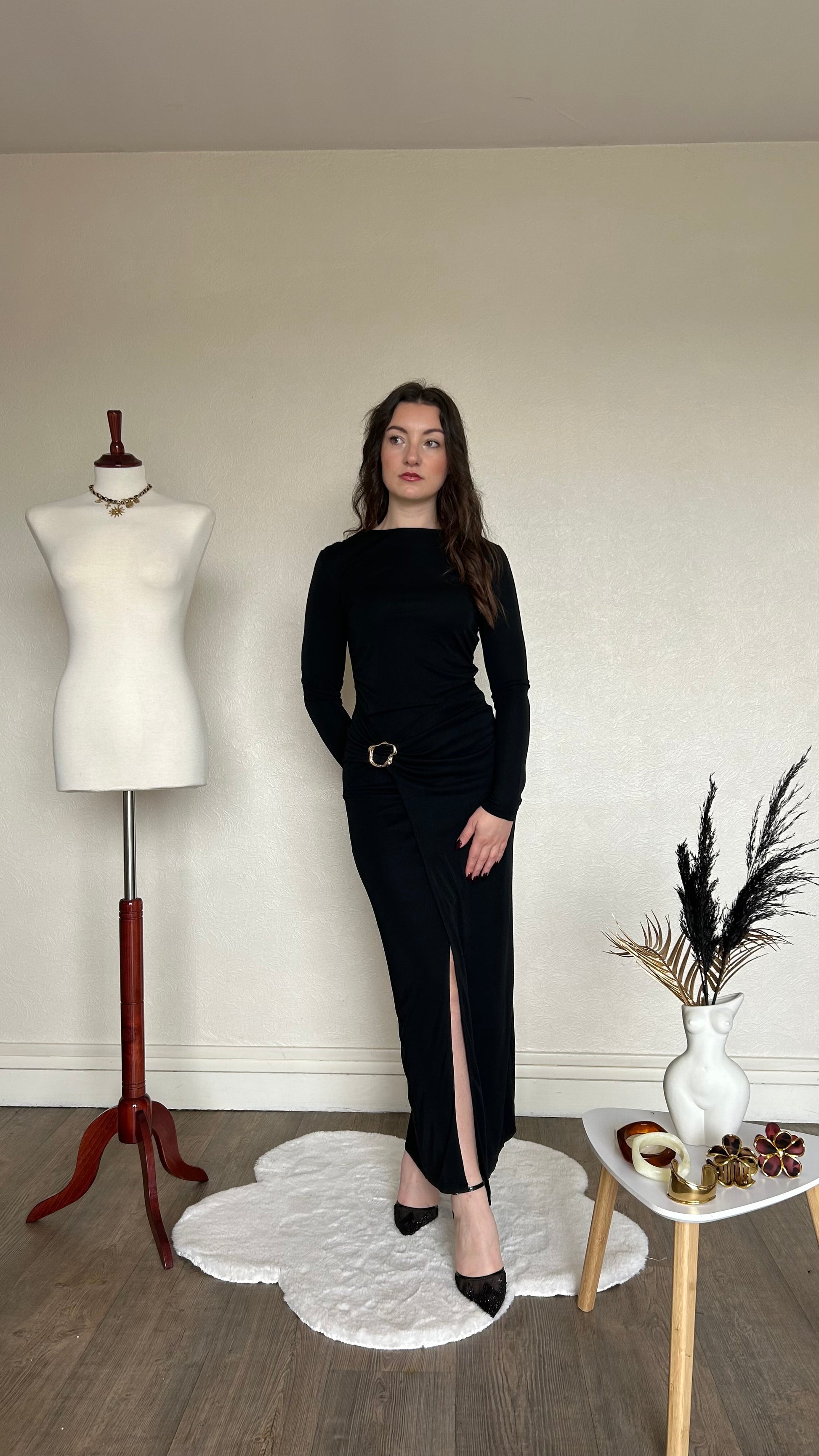 Robe longue avec boucle à la taille